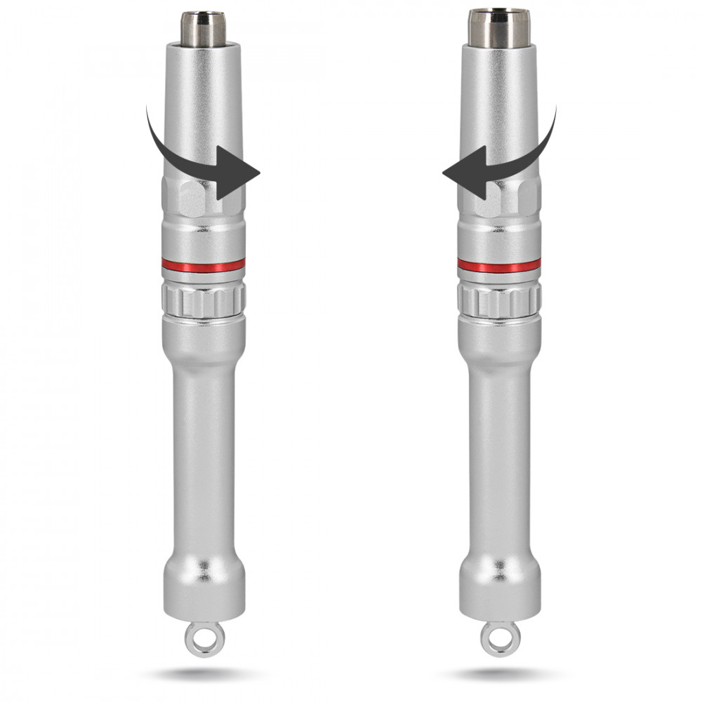 Dank seiner Fähigkeit, das Ende der Zigarre mit höchster Präzision zu perforieren, können Sie je nach Geschmack ein Loch mit einem Durchmesser von 0,8 oder 1,2 cm schaffen, indem Sie einfach die Drehrichtung anpassen, um den gewünschten Puncher zu aktivieren. Über diese Hauptfunktion hinaus offenbart das Aufschrauben des Geräts einen gedrehten Stahlstab, der zum Einführen in die Zigarre gedacht ist. Durch vorsichtiges Drehen und Herausziehen erleichtert dieser Stab das Entfernen des überschüssigen Tabaks und optimiert so den Zug. Darüber hinaus sorgen die beiden eingebauten kleinen Stäbe dafür, dass Sie Ihre Zigarre bis zum Ende halten und genießen können, was ein reibungsloses Erlebnis garantiert. Dieser Locher wird in Silber angeboten, ist aber auch in Schwarz auf unserer Website erhältlich und vereint Funktionalität und Eleganz.