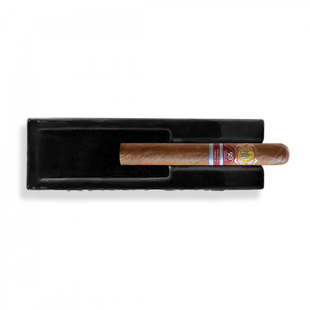 Der Aschenbecher Havana Club El Señorito Noir richtet sich an Liebhaber eleganter Objekte und kubanischer Tradition. Der in Frankreich handgefertigte rechteckige Aschenbecher hat ein auffälliges, glänzend schwarzes Finish, das mit dem ikonischen Reliefschriftzug "HAVANA CLUB" verziert ist. Sein robustes Keramikdesign verleiht ihm eine ausgezeichnete Stabilität und optimale Hitzebeständigkeit. Sie ist ideal für eine Zigarre und fügt sich elegant sowohl auf einem Salontisch als auch im Freien ein. Sein markanter Stil und seine sorgfältige Verarbeitung machen ihn zu einer raffinierten Wahl, um Ihren Raum mit Charakter zu schmücken.