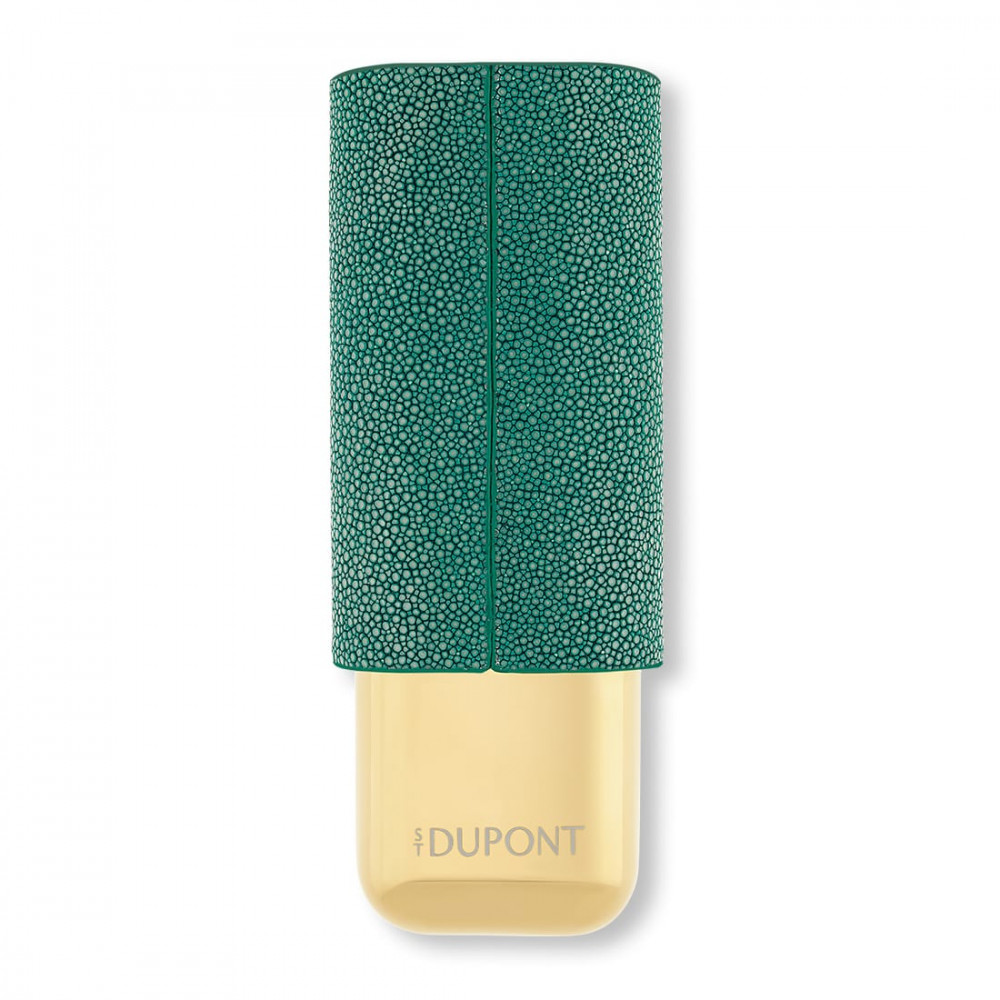 Entdecken Sie ein außergewöhnliches Accessoire mit diesem Zigarrenetui S.T. Dupont, das für den eleganten Transport von zwei Zigarren gedacht ist. Die Verarbeitung aus grünem Leder mit Rochenhaut-Effekt, die direkt von der Welt Jules Vernes inspiriert ist, verleiht diesem Etui einen einzigartigen und raffinierten Stil. Die goldene Basis, die dezent mit dem Logo der Marke verziert ist, verleiht ihm einen zusätzlichen Hauch von Raffinesse. Dieses Etui ist ideal für unterwegs und garantiert den Schutz Ihrer Zigarren, während es gleichzeitig das handwerkliche Können des Hauses S.T. Dupont bestätigt. Das in einer schwarzen Schachtel verpackte Etui ist auch eine perfekte Wahl als Geschenk oder zur Erweiterung einer Sammlung hochwertiger Accessoires.