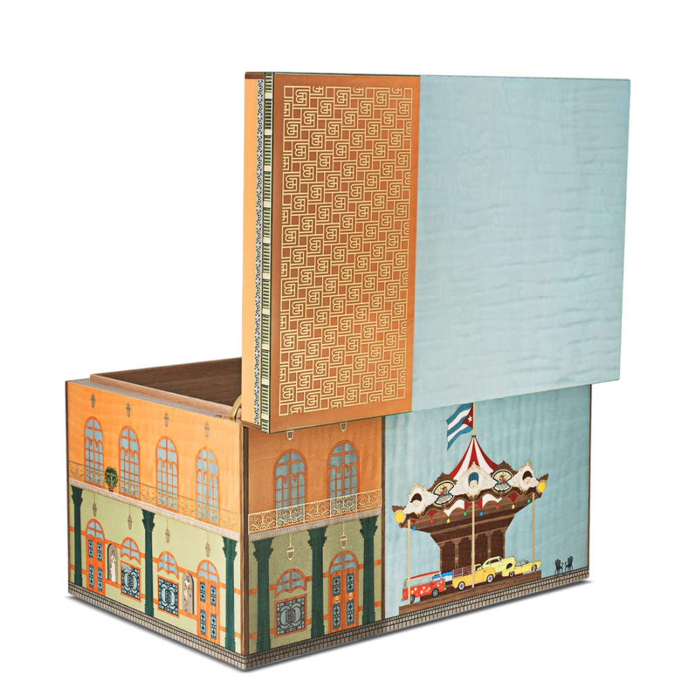 Discover the Carrousel Casa Cubana Elie Bleu Carrousel Casa Cubana, a unique limited-edition humidor designed to hold up to 125 cigars. Its colorful, refined design pays tribute to the festive atmosphere of old Havana.