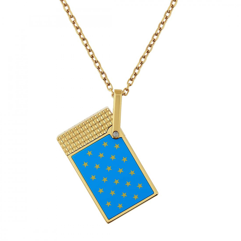 This necklace by S.T. Dupont is inspired by the Wonder Woman universe and features a Ligne 1 gold and red lighter pendant. Ideal for fans of original jewelry and collector's accessories, it combines elegance, graphic style and meticulous finishing.