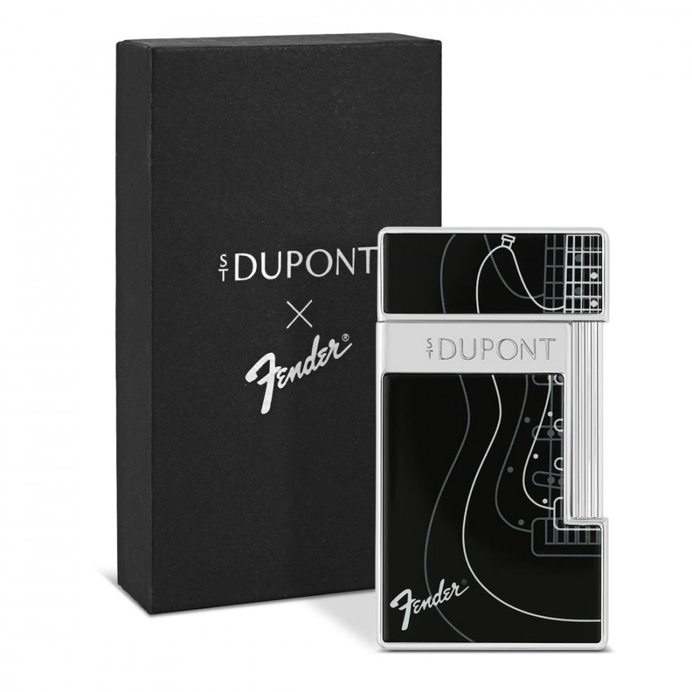Descubra el encendedor S.T. Dupont Slimmy Fender, una edición especial con un diseño refinado nacido de la colaboración entre S.T. Dupont y Fender. Su formato compacto y elegante combina el negro lacado y el cromo para un accesorio moderno y musical.