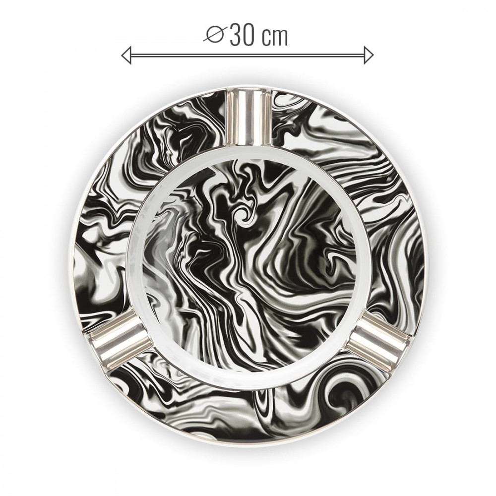 Dimensiones: Este cenicero tiene un diámetro de 30 cm y una altura de 8 cm, proporcionando un espacio generoso y práctico para varios puros.