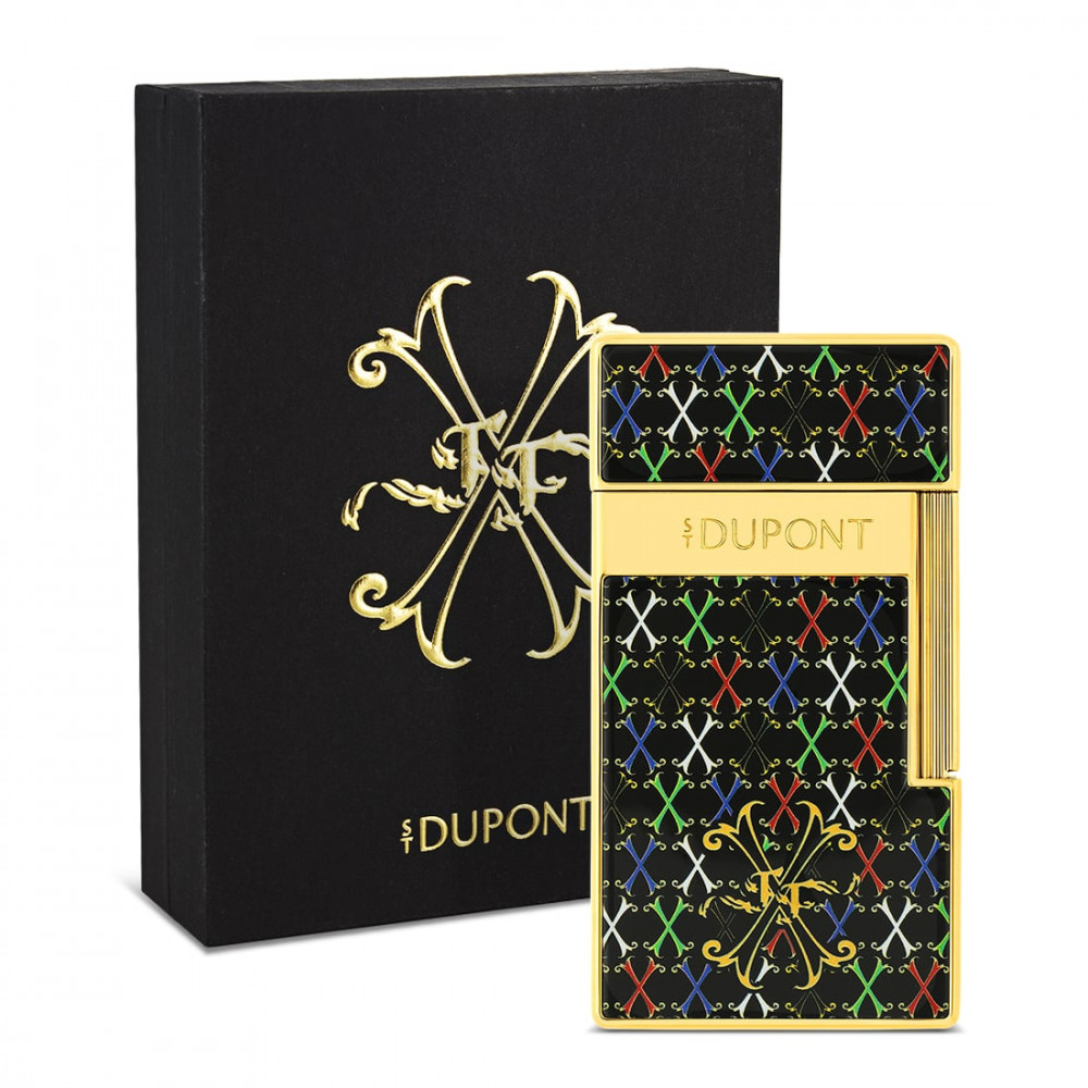 El encendedor S.T. Dupont Biggy Fuente Black Gold es una creación excepcional de la prestigiosa colección Arturo Fuente. Este modelo destaca por su perfecta combinación de elegante diseño y notable artesanía. Su cuerpo de metal dorado está sublimado por una laca negra adornada con motivos multicolores rojos, verdes, azules y blancos, creando una estética única y sofisticada. Su forma generosa y sus líneas limpias aseguran un agarre cómodo, mientras que la calidad de su fabricación garantiza robustez y longevidad. Pensado para coleccionistas y amantes de los accesorios de alta gama, este encendedor se presenta en un refinado estuche de regalo de S.T. Dupont, con la marca dorada de la colección Fuente. Le conquistará por su personalidad decidida y su encanto atemporal.