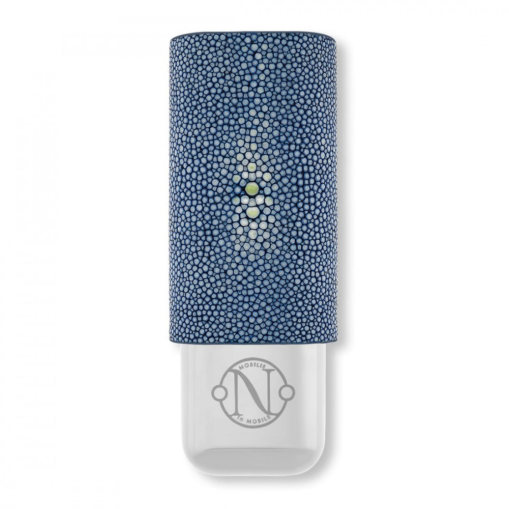 El estuche para puros S.T. Dupont Gulf Stream, producido en serie limitada, seduce por su elegancia y su inspiración literaria. Diseñada para contener dos puros de gran diámetro, combina la piel de raya de color azul intenso con una base rígida de color blanco, ofreciendo una protección óptima y recordando al mismo tiempo la estética de los fondos marinos. El diseño texturizado y el logotipo "Mobilis in Mobile" grabado dan fe de la atención prestada a los detalles. Perfecto para transportar sus puros con total seguridad, este accesorio es ideal para los amantes de los objetos nobles que desean combinar refinamiento y funcionalidad en sus desplazamientos.