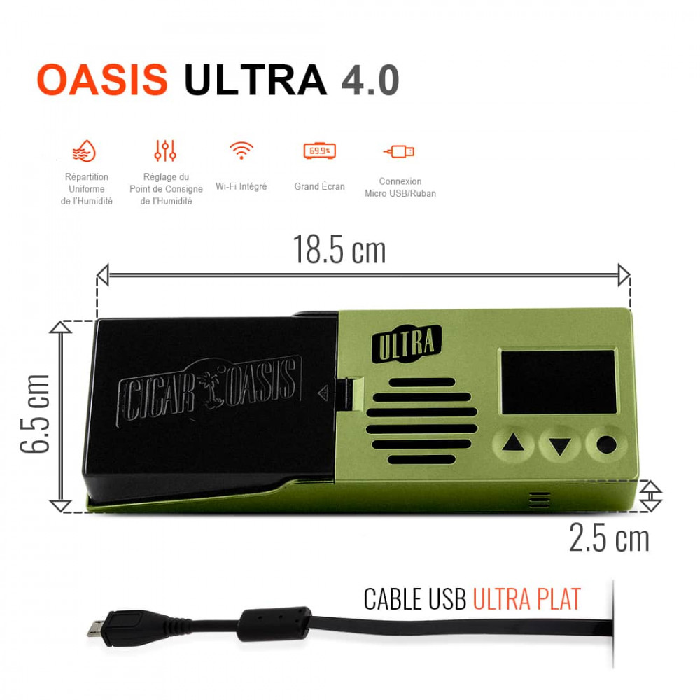 L’humidificateur électronique Oasis Ultra 4.0 assure une régulation précise de l’humidité pour les caves à cigares jusqu’à 300 unités. Compact et connecté, il combine design moderne, écran LCD et suivi à distance pour un contrôle optimal.