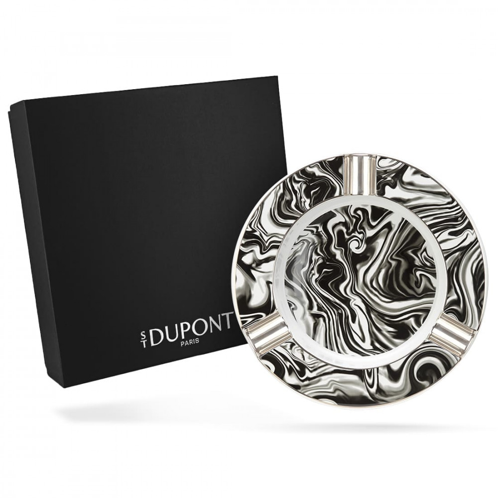 Le cendrier cigare rond XL Fumée Noire de S.T. Dupont incarne l'alliance du raffinement et de la praticité. Pensé pour les amateurs d’objets de caractère, il séduit par son format généreux, idéal pour un usage partagé ou individuel. Sa finition marbrée noire et blanche, rehaussée de détails argentés, apporte une touche moderne et sophistiquée à votre intérieur. Les trois encoches prévues sur le rebord permettent de disposer facilement plusieurs cigares, rendant cet accessoire aussi fonctionnel qu’esthétique. Robuste grâce à sa conception en céramique, ce cendrier s’intègre harmonieusement dans un salon ou un espace dédié, tout en affichant la signature discrète de S.T. Dupont sur sa façade. Livré dans un élégant coffret noir siglé, il constitue également une belle idée cadeau pour les passionnés d’accessoires raffinés.