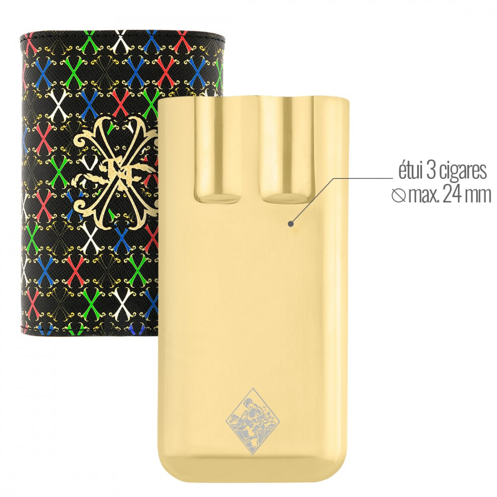 Dimensions : Étui adapté pour trois cigares de 24 mm de diamètre maximum, format pratique pour le transport.