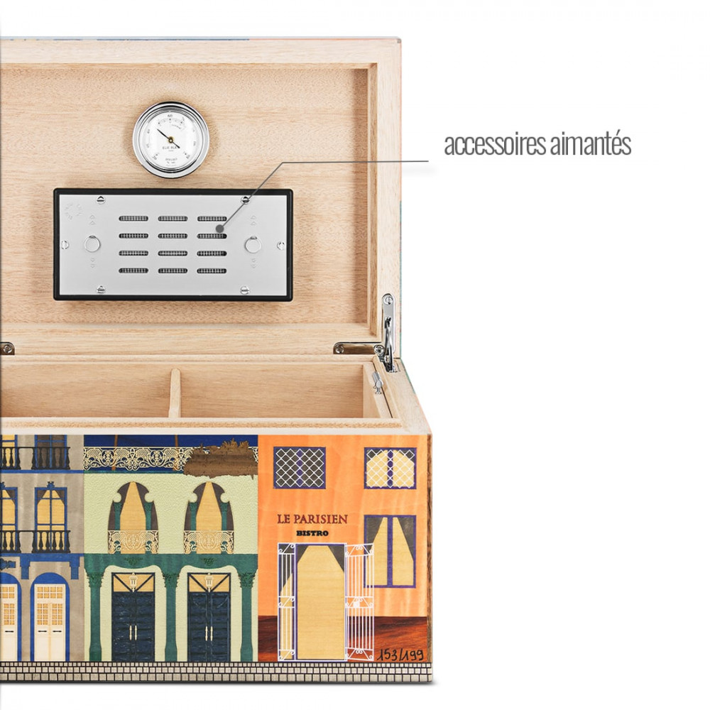 Présentation : Livrée dans son emballage d’origine, édition limitée numérotée, avec hygromètre, humidificateur magnétique et séparateurs amovibles.