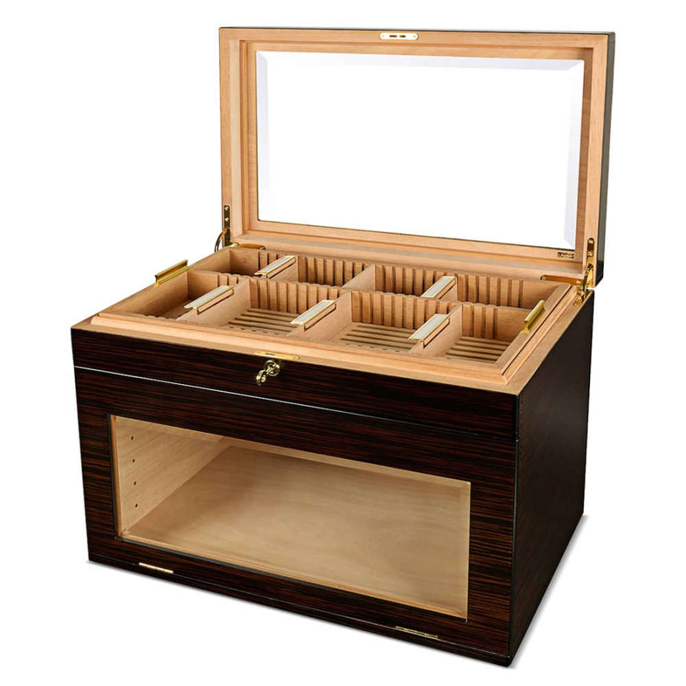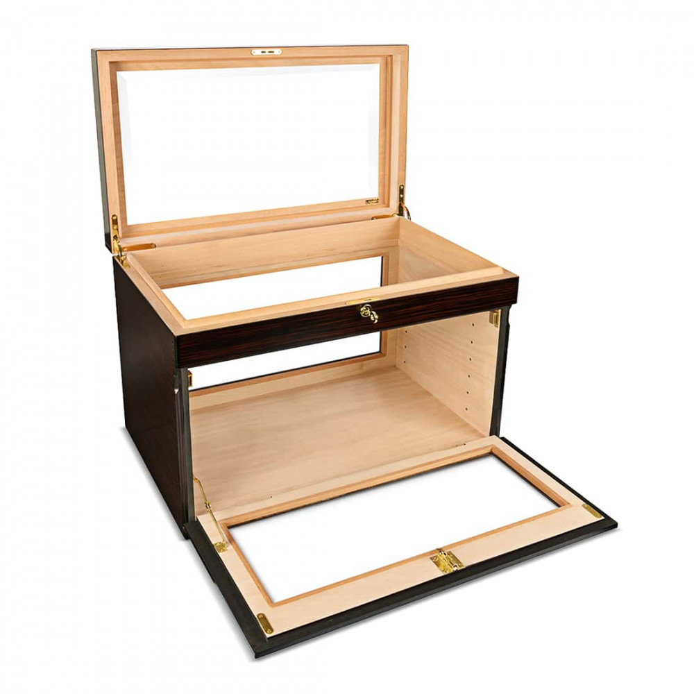 Dimensions : Cette cave mesure 57 cm de longueur, 35 cm de largeur et 41 cm de hauteur, offrant un volume spacieux pour le rangement et l’exposition de votre collection.
