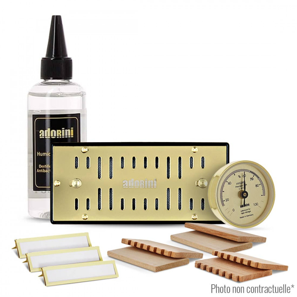 Présentation : Produit livré avec ses accessoires visibles sur les images, dont l’hygromètre, le flacon d’humidification et les éléments de séparation.