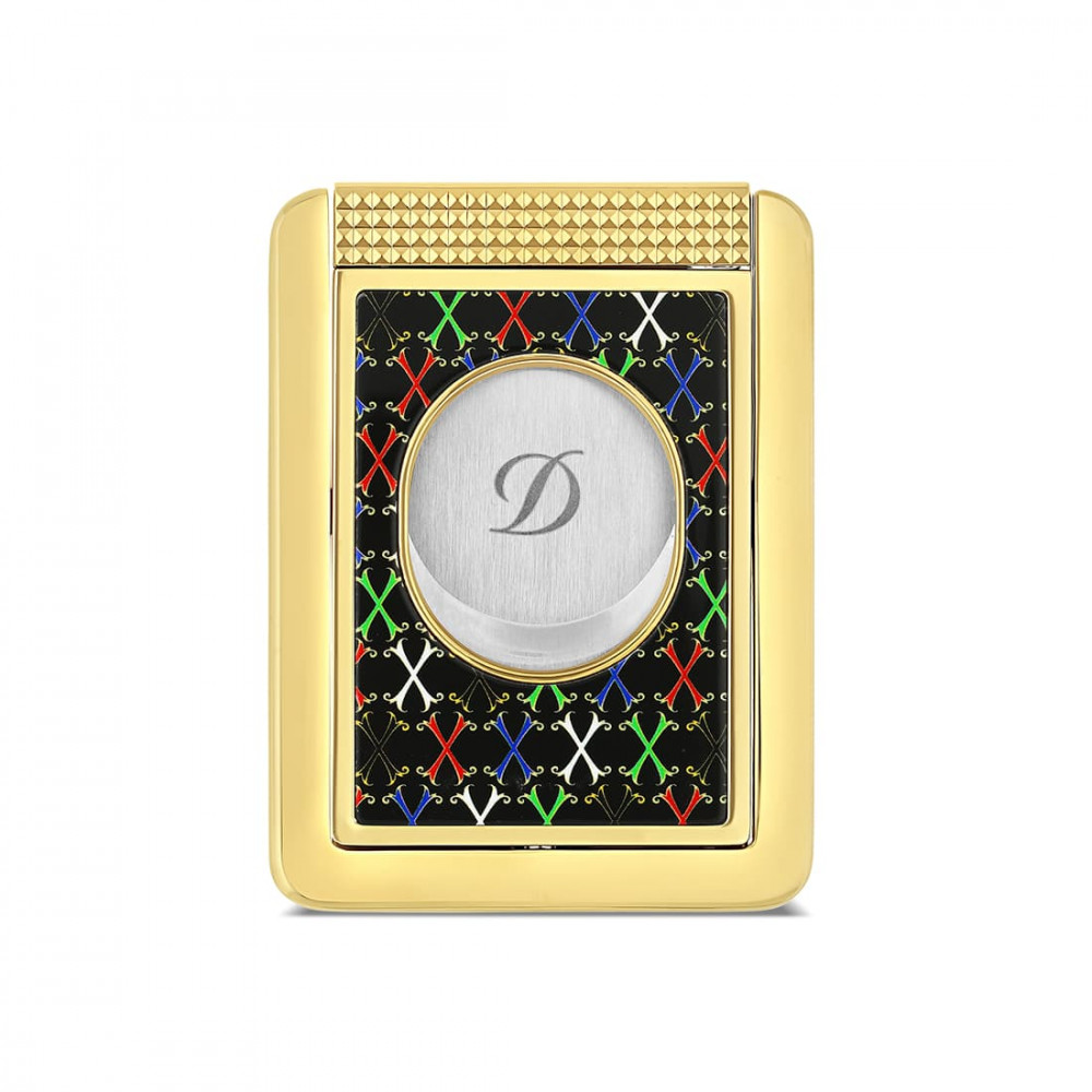 Il tagliasigari S.T. Dupont X Stand Fuente Black Gold vanta un look sofisticato, che combina una cornice dorata con un decoro nero ornato da motivi multicolori. In omaggio al marchio Arturo Fuente, il suo design esclusivo e le sue finiture accurate lo rendono un vero e proprio richiamo visivo. Questo accessorio compatto è dotato di un meccanismo a lama circolare in acciaio che garantisce un taglio netto. Il supporto pieghevole integrato lo rende tanto pratico quanto elegante. Fornito in una raffinata scatola, incarna l'eccellenza delle creazioni S.T. Dupont, rinomate per l'artigianalità e l'attenzione ai dettagli. Ideale per gli amanti degli oggetti eccezionali che cercano un accessorio tanto estetico quanto funzionale.