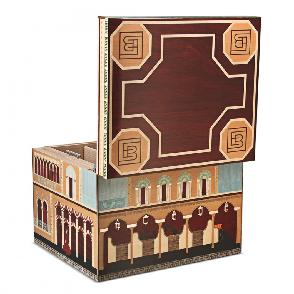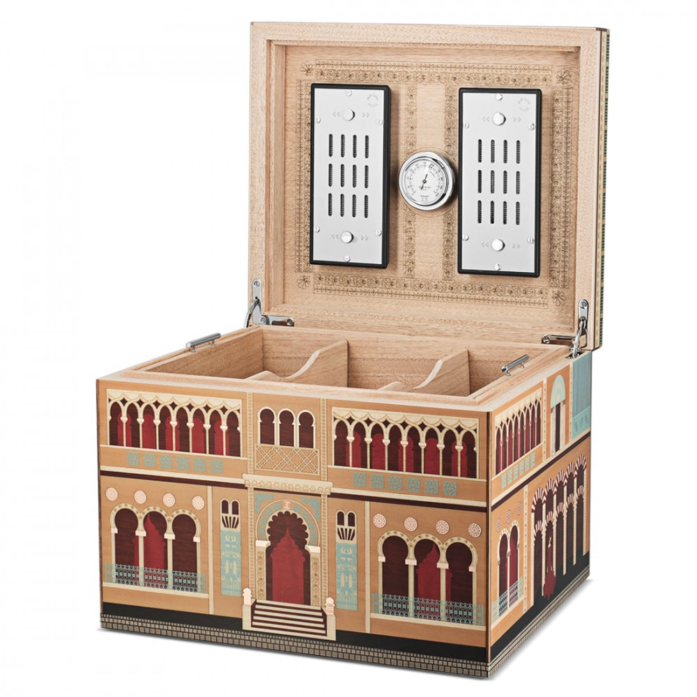 L'humidor per sigari Elie Bleu Cienfuegos 110 è un pezzo eccezionale che celebra l'artigianato francese e l'eleganza ispirata al patrimonio cubano. Il suo design unico, frutto di un meticoloso lavoro di intarsio, evoca l'emblematica architettura del Palacio de Cienfuegos. Questa serie limitata e numerata vanta una finitura meticolosa e un interno in legno pregiato ottimizzato per contenere fino a 110 sigari in tutta sicurezza. Con i suoi divisori rimovibili e il sistema di umidificazione integrato, garantisce la conservazione ideale della vostra collezione. Più che un semplice accessorio, questo humidor combina estetica, funzionalità e prestigio, rendendolo un vero e proprio oggetto da collezione e decorativo.