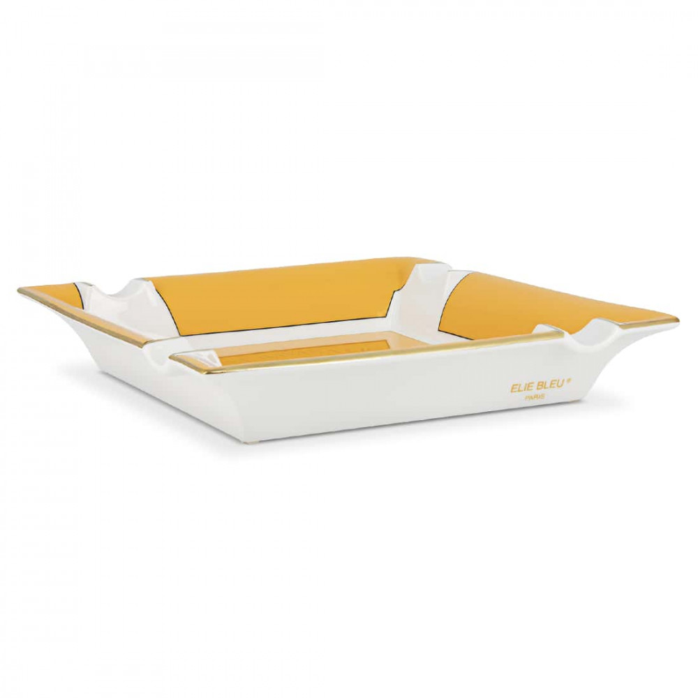 O cinzeiro Elie Bleu Ché Jaune et Bridges Dorés é uma peça excecional concebida para os amantes de acessórios requintados. A sua forma quadrada permite o armazenamento de até quatro charutos, enquanto o seu centro apresenta um motivo emblemático e uma inscrição dedicada. O seu acabamento amarelo luminoso, realçado por pontes de ouro amovíveis, ilustra a perícia da Elie Bleu. Fabricado em porcelana de alta qualidade, alia elegância e funcionalidade. As ranhuras profundas garantem uma estabilidade perfeita, enquanto os pormenores metálicos conferem um toque de luxo. Apresentado numa caixa de assinatura, este cinzeiro é ideal para valorizar qualquer espaço dedicado aos acessórios para charutos.
