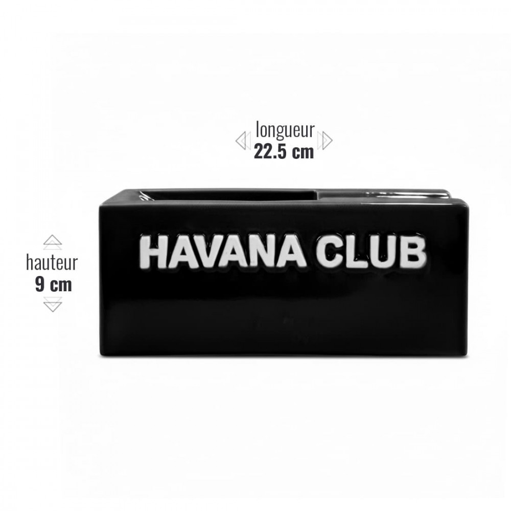 O cinzeiro Havana Club El Señorito Black é para os amantes de objectos elegantes e da tradição cubana. Fabricado à mão em França, este cinzeiro retangular apresenta um acabamento em preto brilhante atraente, decorado com a emblemática inscrição em relevo "HAVANA CLUB". O seu design robusto em cerâmica confere-lhe uma excelente estabilidade e uma óptima resistência ao calor. Ideal para segurar um charuto, fica tão bem numa mesa de café como ao ar livre. O seu estilo assertivo e os seus acabamentos meticulosos fazem dela uma escolha requintada para realçar o seu espaço com carácter.